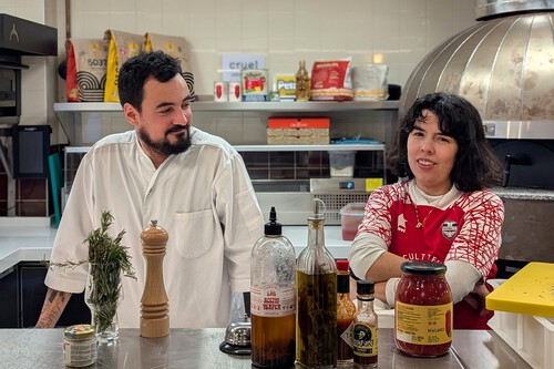 También hay una voluntad clara de evitar el dogmatismo. “La pizza lo admite todo, solo tienes que saber cómo”, afirma. Eso incluye ingredientes que durante años han sido objeto de debate, como la pizza con piña. Para Gómez, la cuestión no es tanto qué se pone encima como cómo se trabaja: una buena materia prima, bien tratada —por ejemplo, una piña fresca pasada por la parrilla—, puede tener sentido dentro de una pizza equilibrada.
