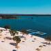 Más allá del agua, la playa cuenta con un equipamiento que sorprende por su amplitud. Hay campos para practicar fútbol y vóley playa, lo que transforma el lugar en un centro de actividad para grupos y familias.