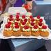 A punto de coronar los craquelins con la ganaché de chocolate blanco.