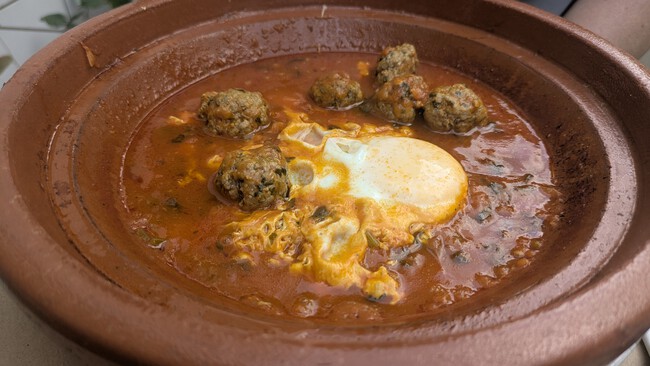 En él no es raro encontrar, para comenzar, propuestas como la harira, una sopa con tomate que suele incluir legumbres y carne, el pisto de pimientos, la muhammara o el hummus casero, acompañado de panes planos que también se elaboran en el local. Antes, llegan a la mesa unas aceitunas aliñadas, con un toque especiado y picante muy agradable.