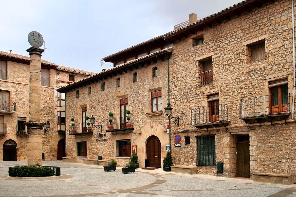 De allí es fácil tomar la Calle Mayor, traspasando el Portal de la Casa Sapera, y desviar el recorrido explorando las callejuelas que se abren durante su trazado a ambos lados. La calle desemboca en la hermosa Plaza Mayor, con su Rollo de Justicia en el centro, y rodeada de bonitos edificios señoriales incluyendo el Ayuntamiento, el hotel Villa de Cretas y la antigua cárcel.