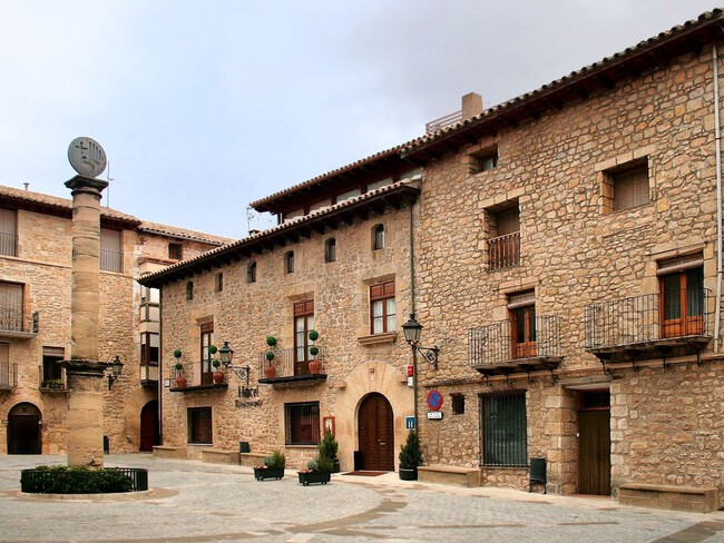 De allí es fácil tomar la Calle Mayor, traspasando el Portal de la Casa Sapera, y desviar el recorrido explorando las callejuelas que se abren durante su trazado a ambos lados. La calle desemboca en la hermosa Plaza Mayor, con su Rollo de Justicia en el centro, y rodeada de bonitos edificios señoriales incluyendo el Ayuntamiento, el hotel Villa de Cretas y la antigua cárcel.